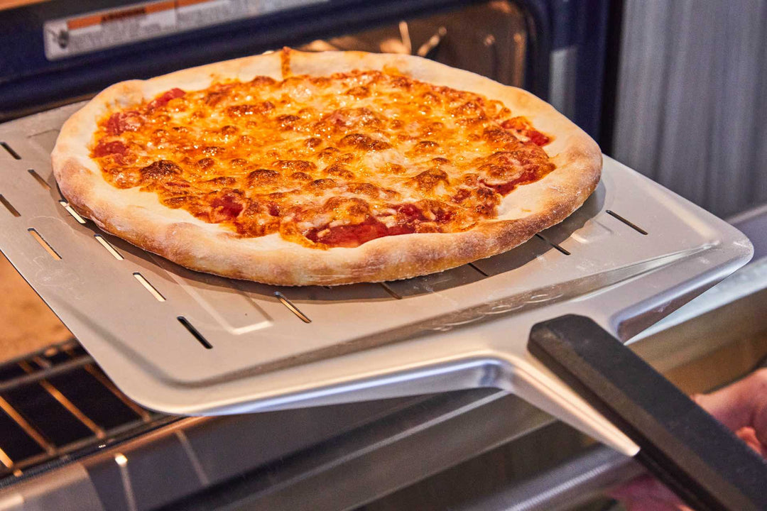 We baked our pizzas on the Ooni Pizza Steel 13 in a conventional oven. After just thirty minutes of preheating time, the Steel is piping hot and ready to cook, and in only 5 to 6 minutes, you’ll have a pizza with a crisp yet chewy base that’s covered in bubbly, melty cheese.