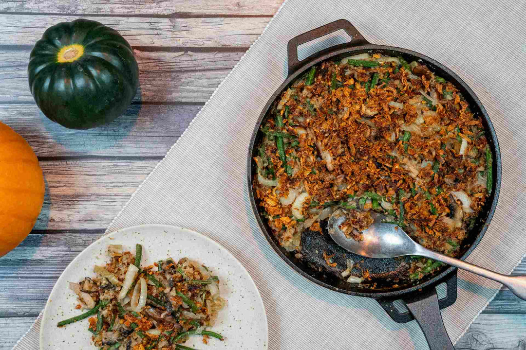 While we generally agree that gussying up nostalgic foods misses the point, we like the revved-up texture and flavor that fresh ingredients bring to green bean casserole. While we didn’t want to stray too far from tradition — after all, the Campbell’s Test Kitchen recipe is so well loved that it’s served on about 20 million tables every year — we did add a few flourishes to elevate the dish.