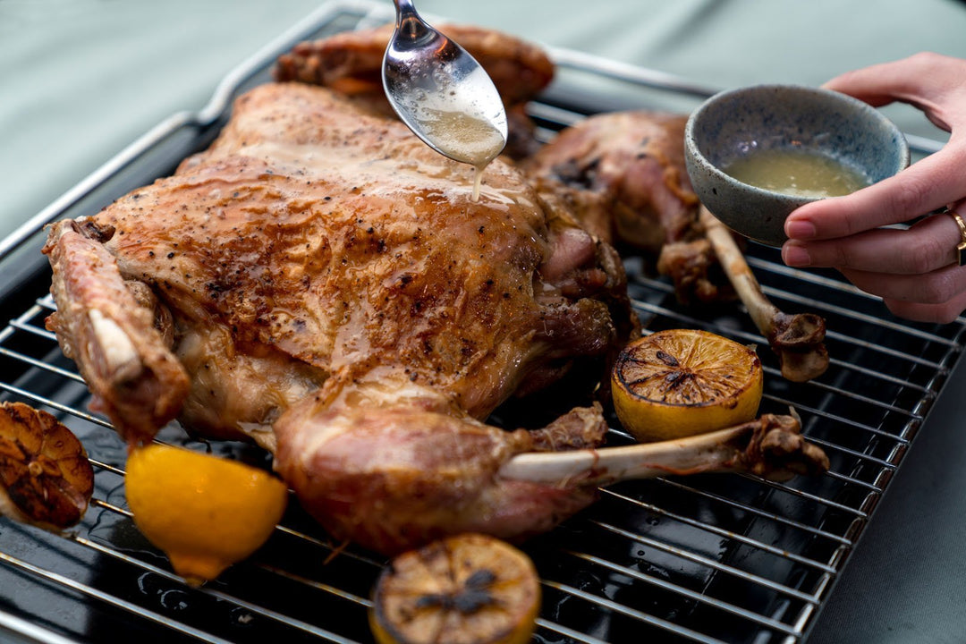 A quicker, easier method for cooking your holiday turkey with an even better flavour than your conventional oven offers – brine and spatchcock a whole turkey, then roast it in a charcoal-fired Ooni Pro for evenly cooked, tender, flame-roasted meat. Using charcoal means being able to maintain a lower temperature more easily over a long cook time.