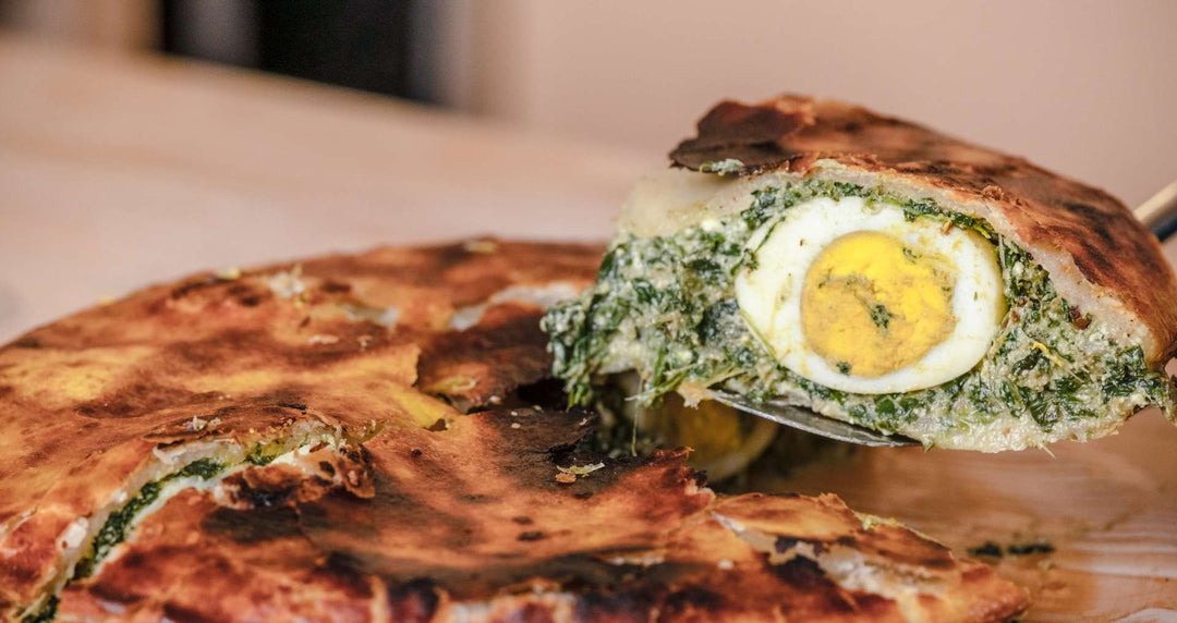 Torta Pasqualina, a savory double-crusted pie filled with greens, artichokes and hard boiled eggs, originated in Genoa in the 1500s, but has become a tradition across Italy in the years since its creation. Our spinach-based recipe comes from Calabrian food blogging duo Cristina Bruno and Giuliano Bronzi of Vuoi Assaggiare.