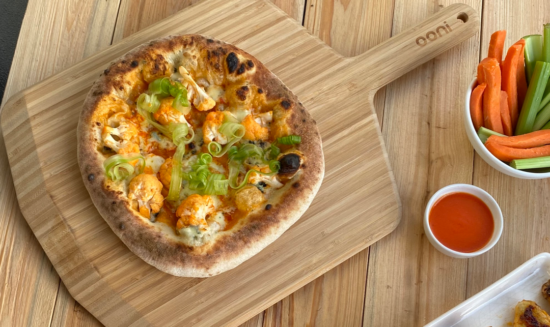 From our resident buffalo-enthusiast Josh Tahan (@truecraftbbq) comes this spicy, vegetarian twist on a classic. Using the Anova X Ooni recipe for flawless wings and homemade buffalo sauce, this pizza is paired with tangy blue cheese and fresh celery shavings. Meat-lovers and vegetarians alike can agree it’s worth the prep, for tender wings with a spicy crunch topped on a creamy cheese pizza.