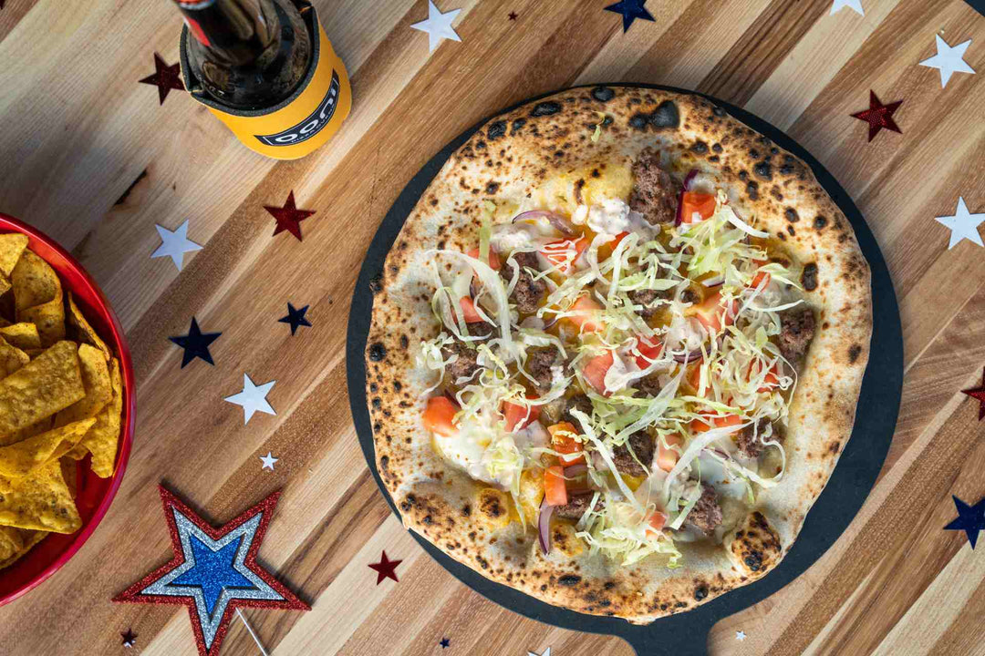 Our cheeseburger pizza has all the elements of the best kind of burger: melty cheese, perfectly cooked meat, sliced onion. Our stomachs are grumbling just thinking about it. With a post-bake addition of tangy special sauce, fresh diced tomatoes and crunchy shredded lettuce (aka shredduce), we found ourselves transported to the cookouts of our youth where the typical grilled patties were the stars of the show.