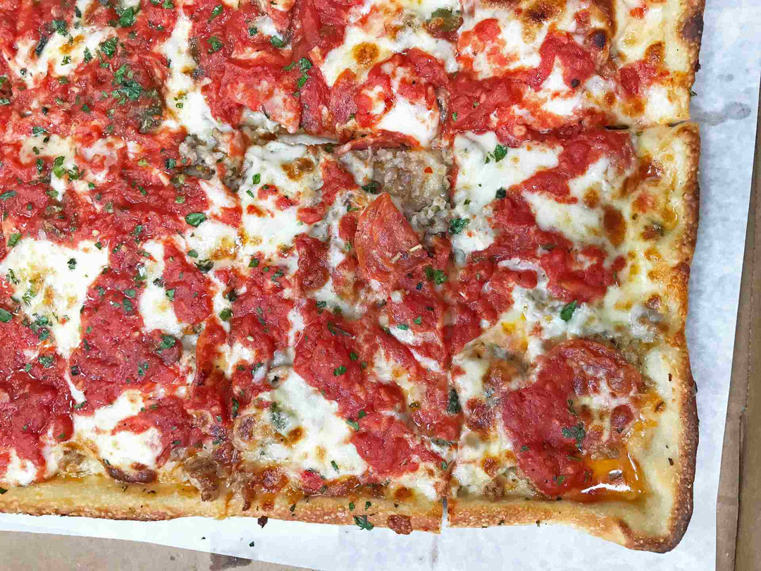 La carrière de Tommy DeGrezia ne remonte pas jusqu’à l’époque des pizzas secrètes de Long Island. Ça n’empêche pas le fondateur de Sofia Pizza Shoppe et propriétaire du Sofia Wine Bar de rester profondément ancré dans la tradition de la pizza new-yorkaise : son grand-père faisait partie des fondateurs de la J & V Pizzeria à Bensonhurst, Brooklyn, qui est l'un des endroits les plus connus du quartier depuis 1955. C’est sans doute pourquoi la pâte “Grandma” version Tommy reste fidèle à la tradition : fine, croustillante et moelleuse.