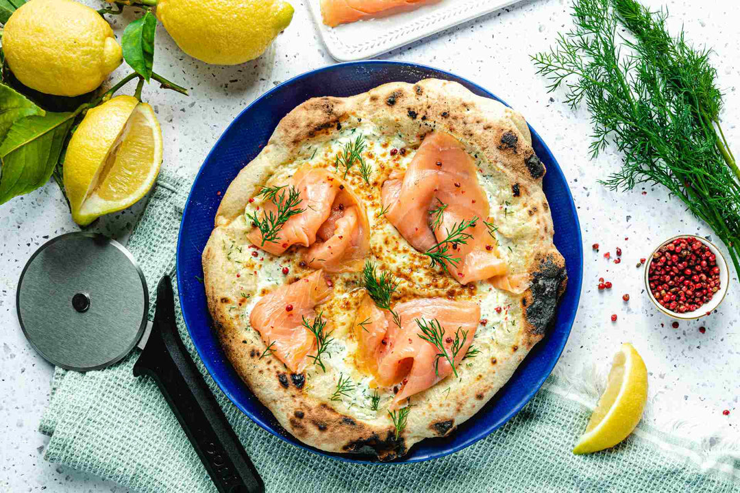 Le saumon fumé est savoureux en tant que garniture de pizza, mais est aussi excellent en accompagnement, dans une salade ou en sandwich. Il est à noter qu’il est préférable d’ajouter le saumon lorsque la pizza est cuite, puisqu’une haute chaleur atténuera son goût distinct et sa texture. Ajoutez aussi de l’aneth et de la crème fraîche épaisse pour déguster une tarte nordique irrésistible.