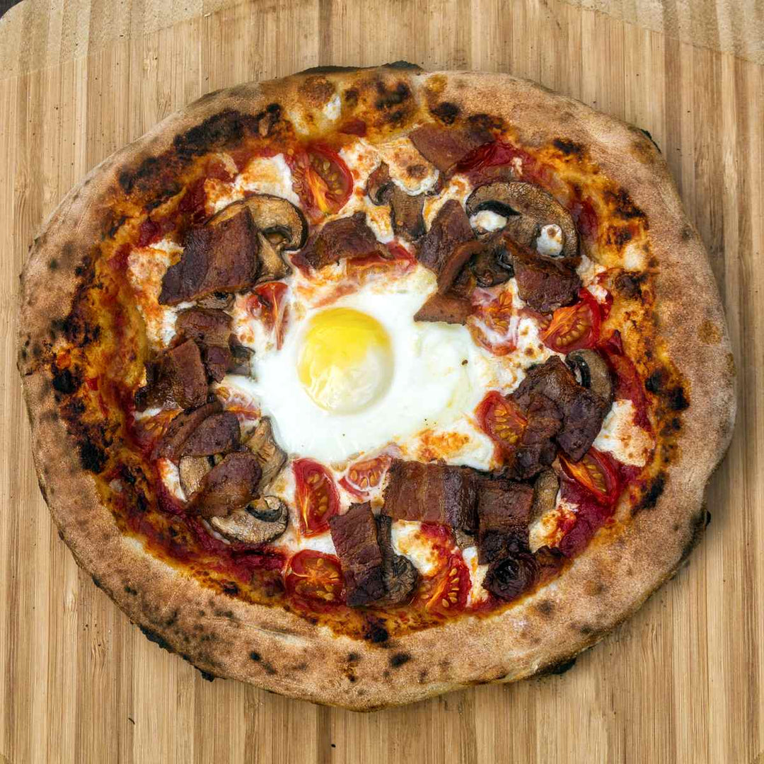 C'est peut-être la pizza de petit-déjeuner ultime, mais nous pouvons garantir qu'elle est savoureuse quelle que soit l'heure de la journée. Combinant certains des ingrédients de base d'un « grand petit-déjeuner » comme l'œuf coulant, le bacon et les tomates, cette pizza est un véritable miracle du matin que tout le monde devrait essayer.
