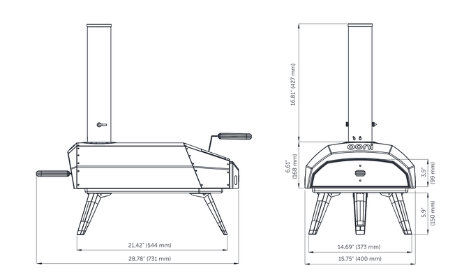 - Directement utilisable avec du bois ou du charbon de bois, ou peut être couplé au brûleur à gaz Ooni (vendu séparément).