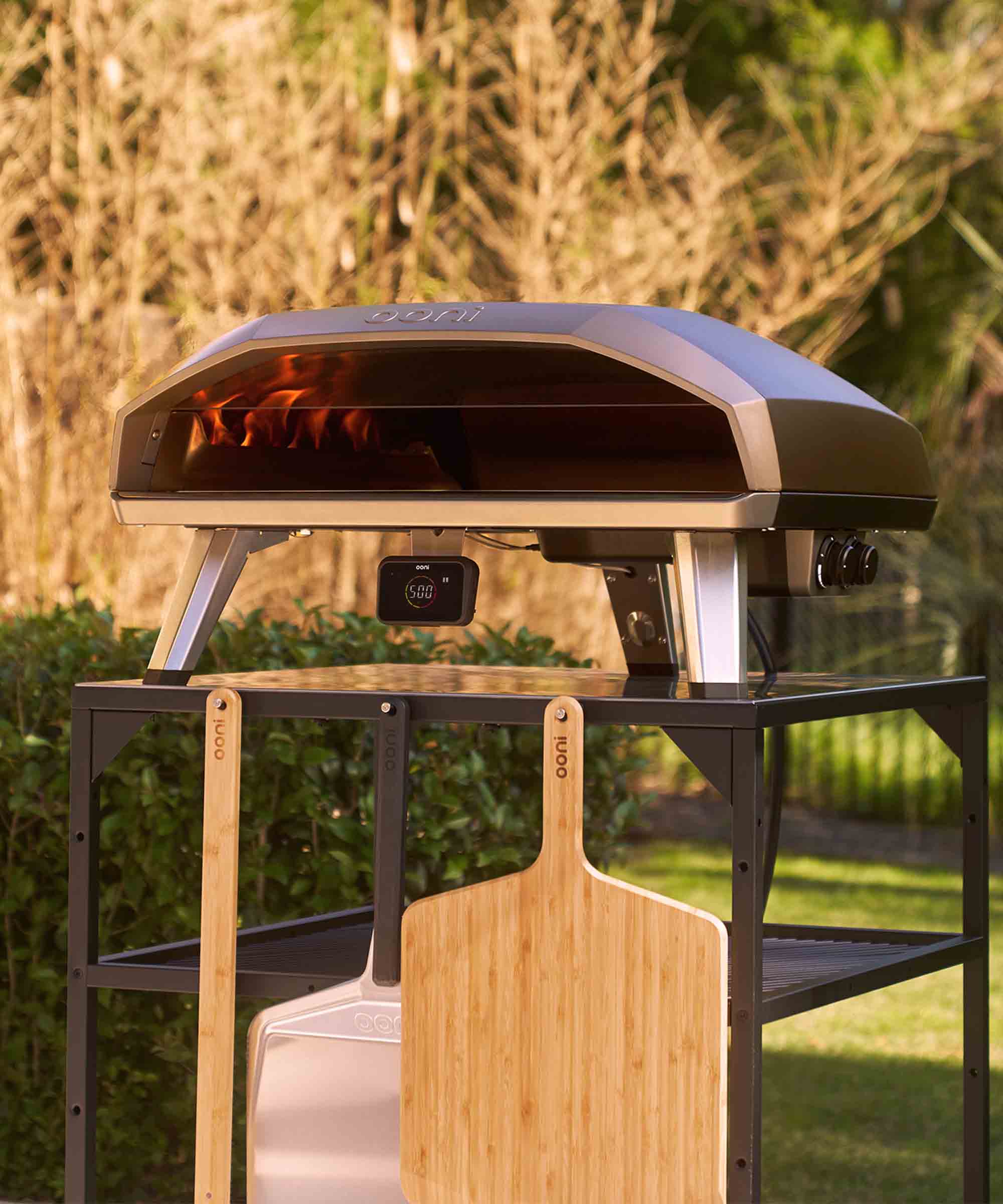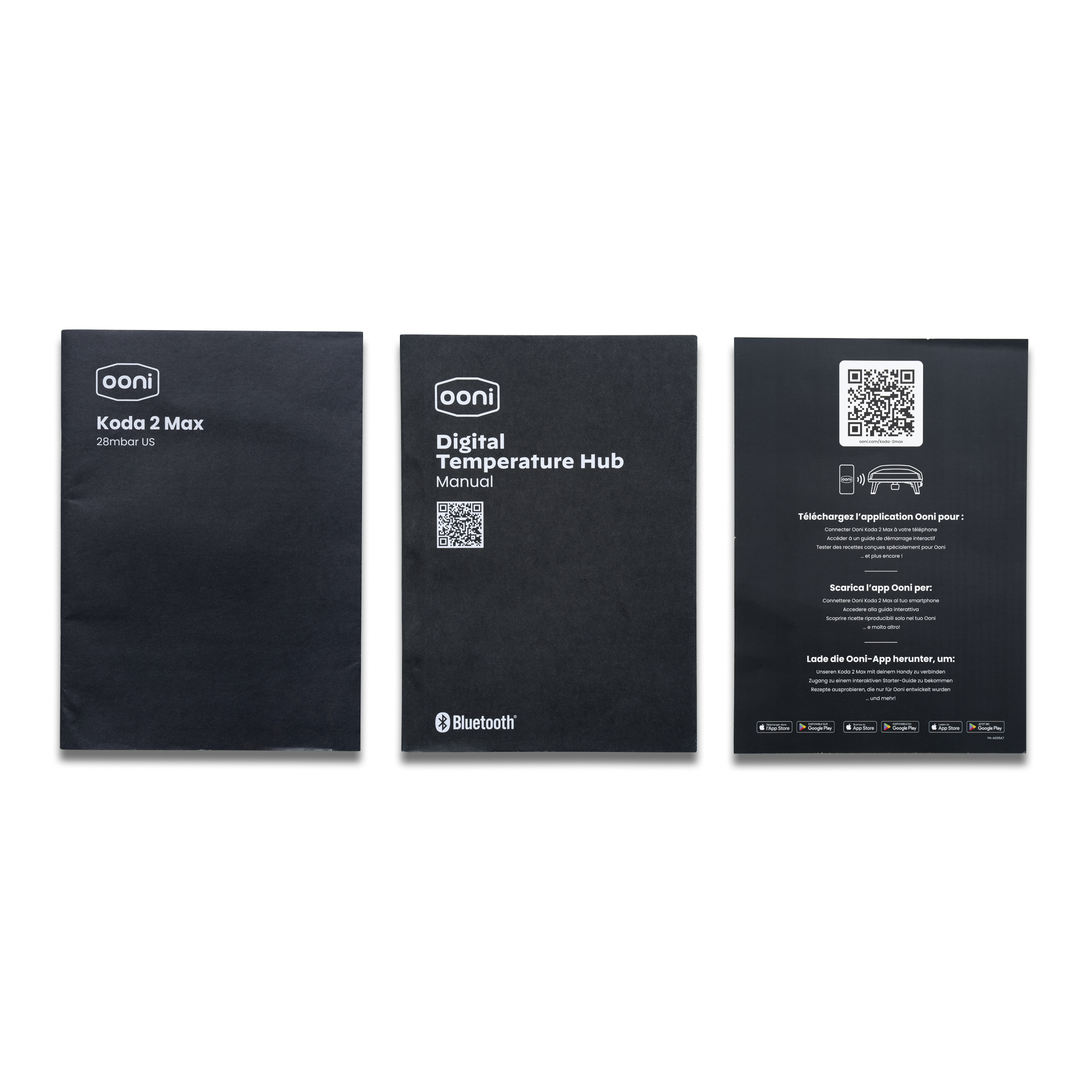 - Spend more time with guests and less time babysitting the fire because you’ll know exactly when to cook with the Bluetooth-enabled Ooni Connect™ Digital Temperature Hub. Its front-mounted display provides real-time ambient temperature, readings from the two food probes for and you can also sync it to the Ooni app to log cooking sessions, set alerts and more.