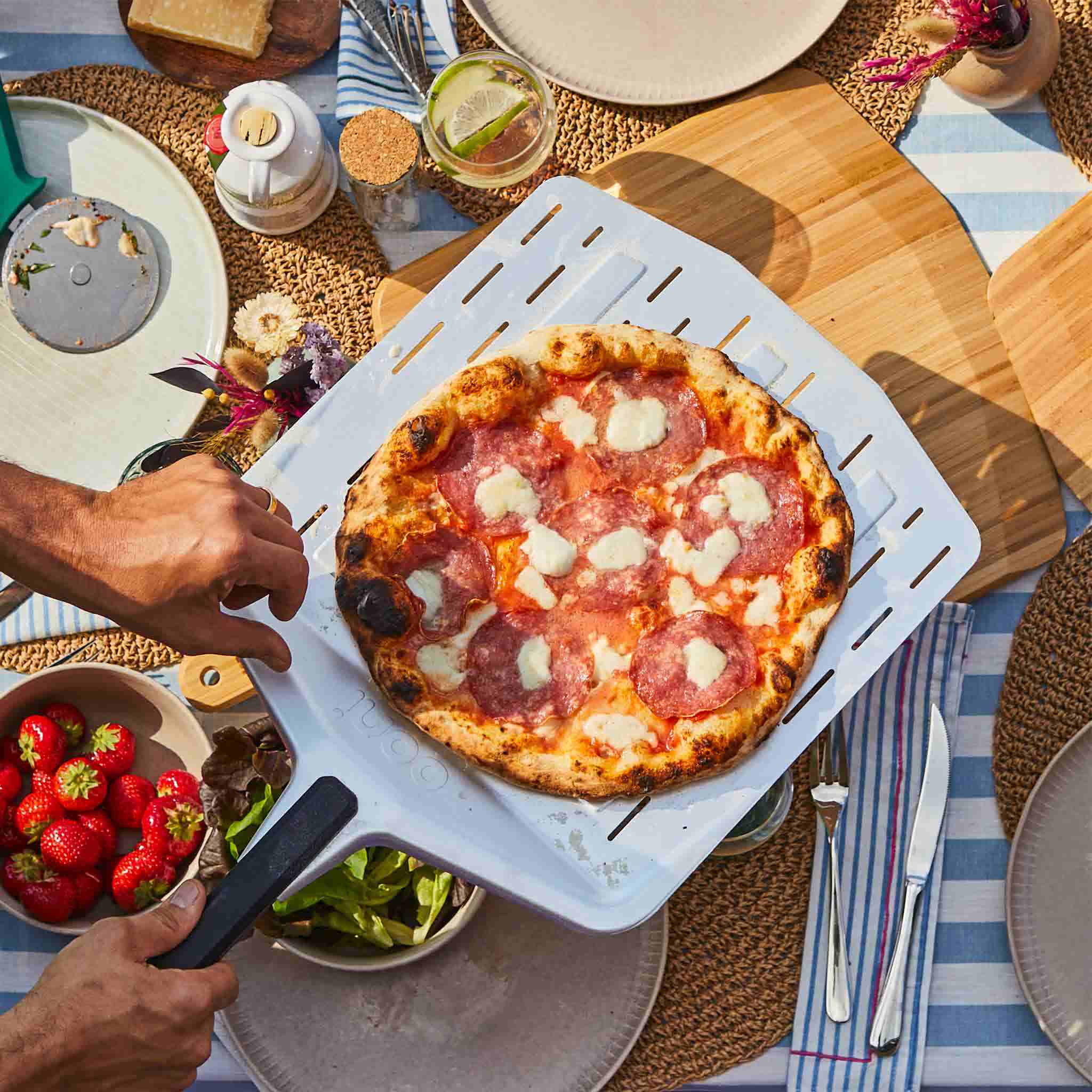 Our perforated aluminium Ooni Perforated Pizza Peel is a high-quality, lightweight peel for sliding, turning and retrieving pizzas from your oven with ease.