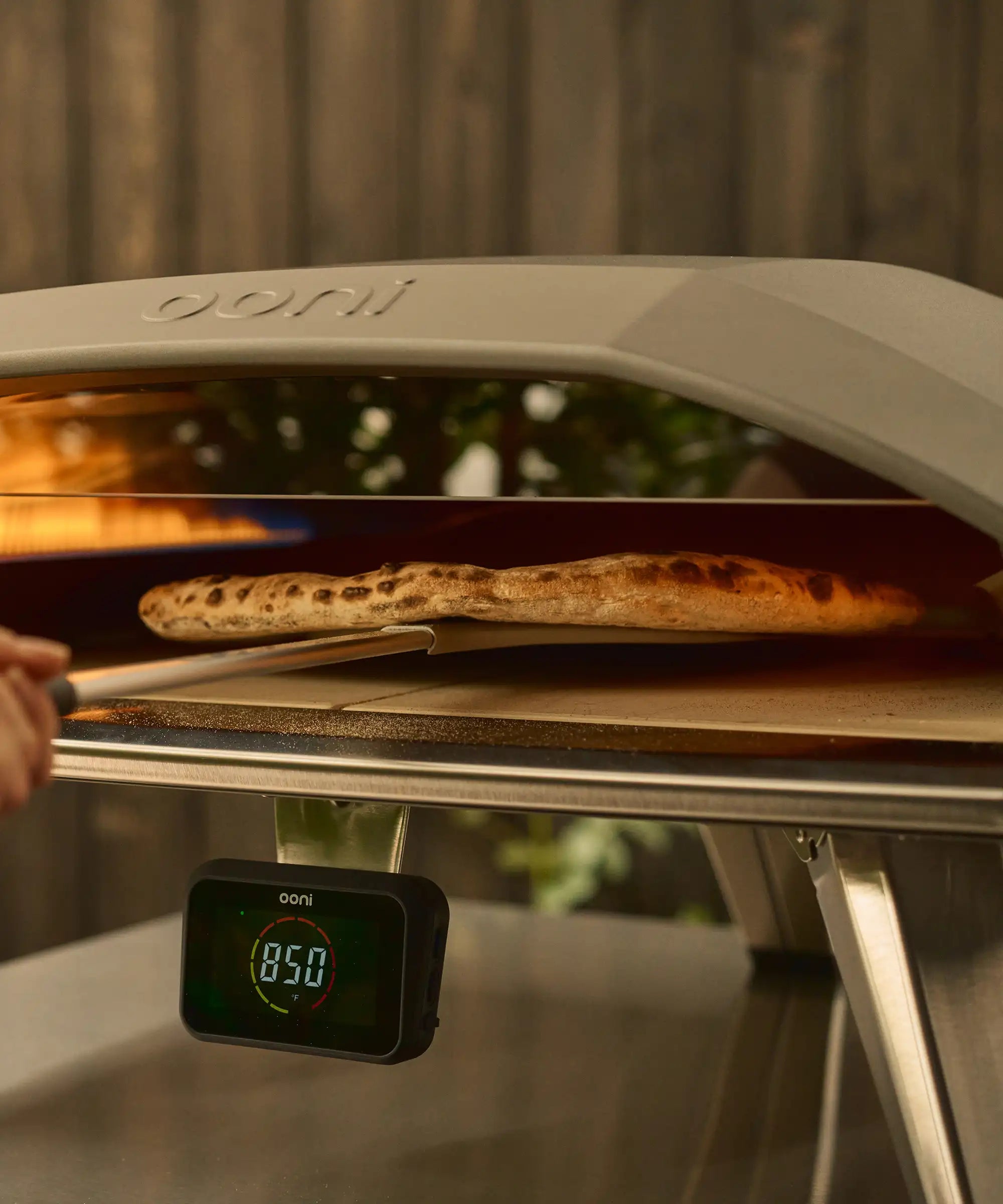 Check crisp level underneath, lift bases for added searing on top or rearrange multiple pizzas with ease around a bigger stone.
